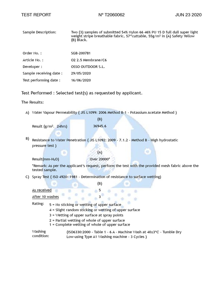 Test Report O2 Membrane 30k | PDF | Materials