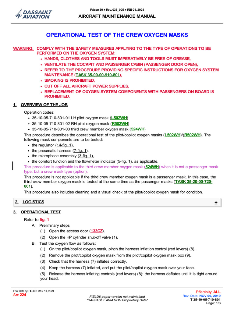 Crew Oxygen Masks Operational Test Guide | PDF | Aviation | Equipment