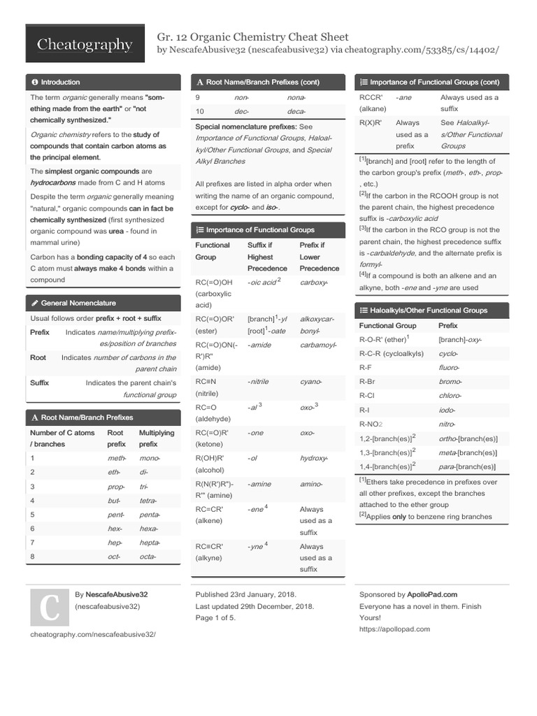Organic Chemistry Cheat Sheet | PDF | Amide | Carboxylic Acid