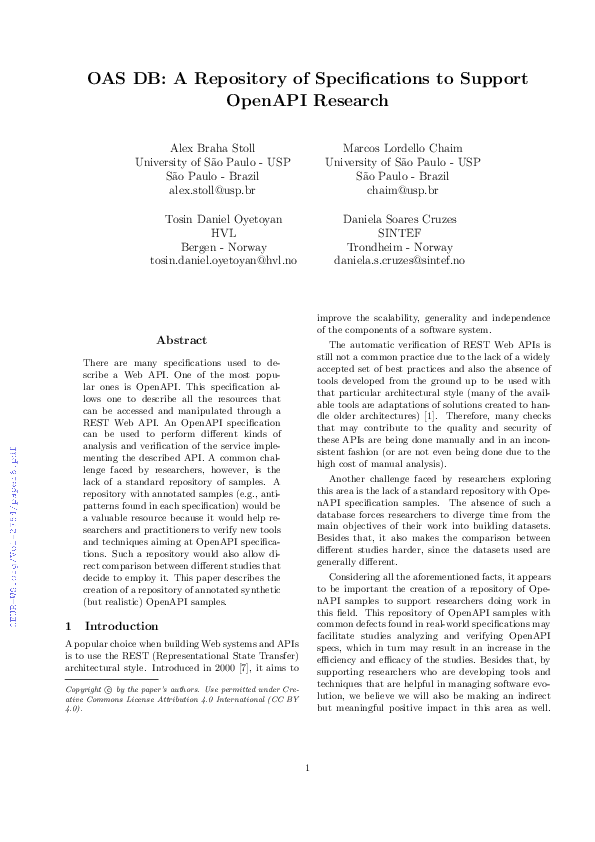 (PDF) OAS DB: A Repository of Specifications to Support OpenAPI Research
