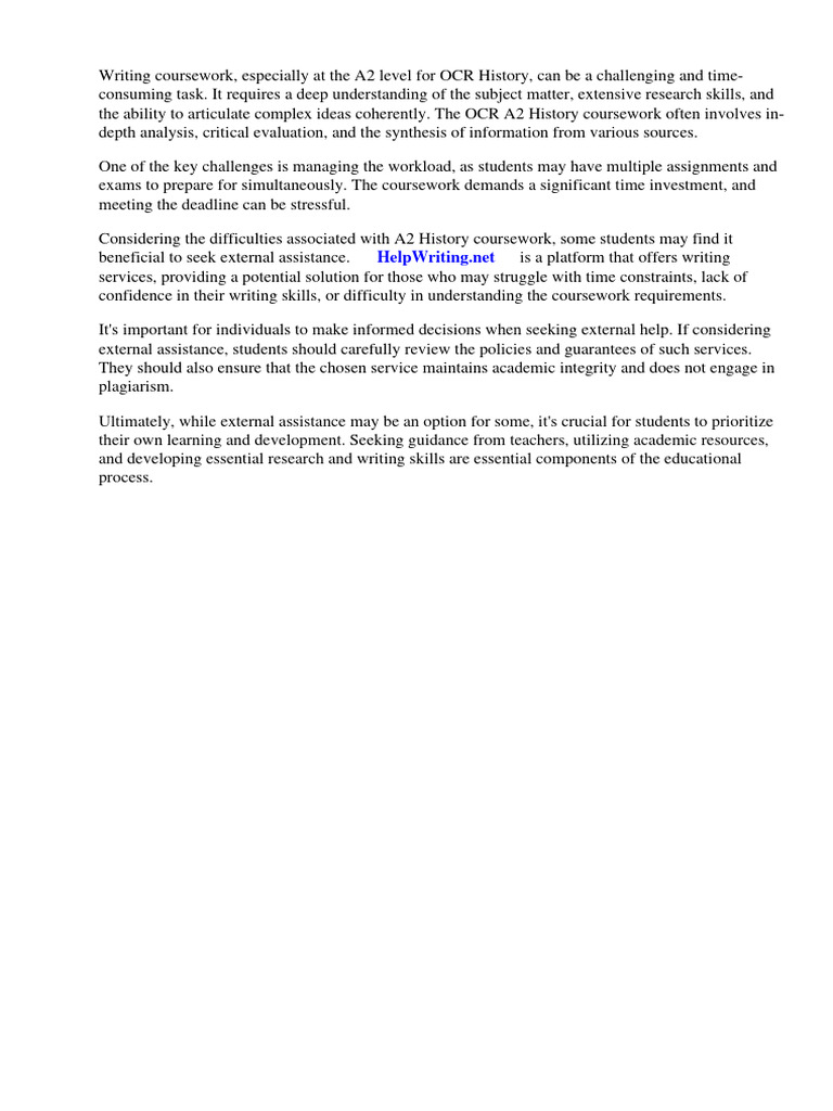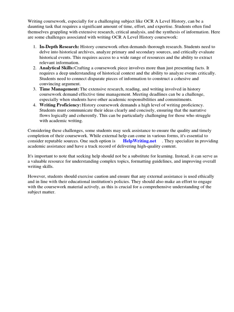 Ocr History Coursework Gcse | PDF | Gce Advanced Level (United Kingdom ...