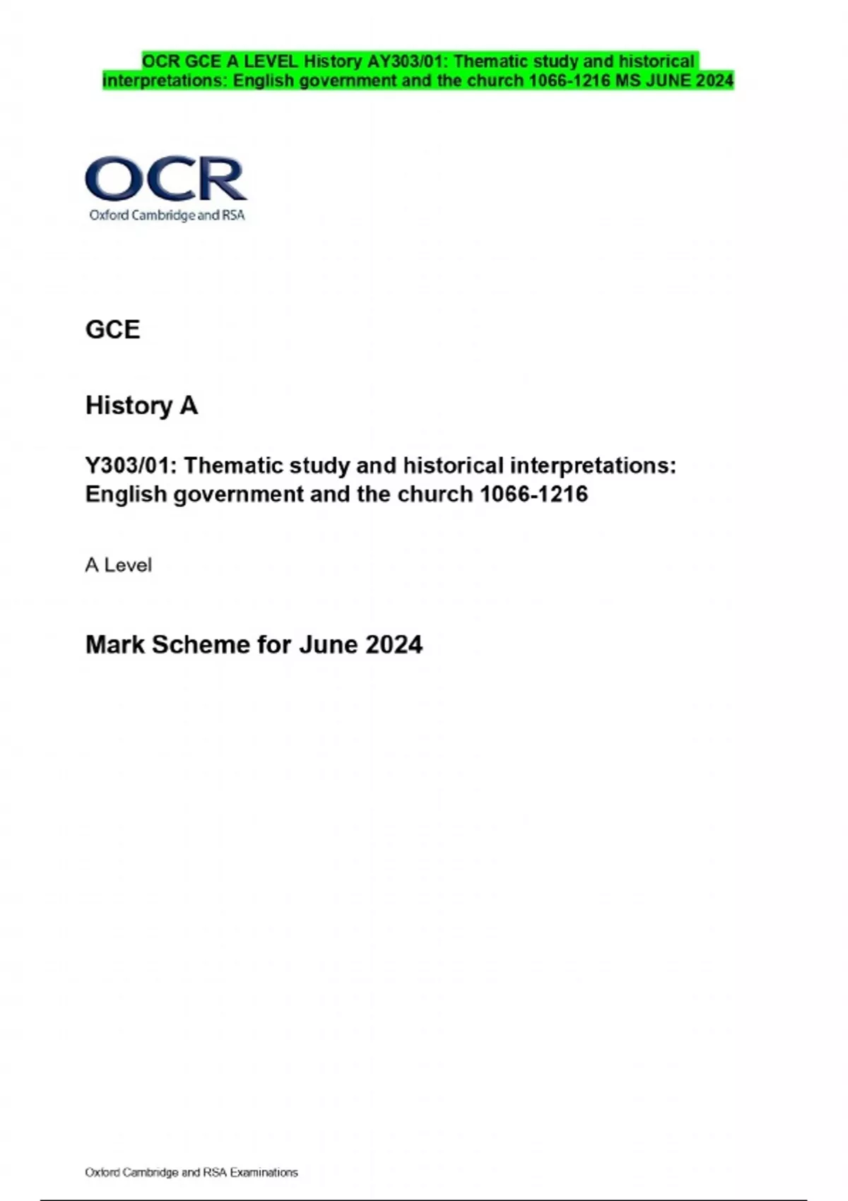 OCR A LEVEL HISTORY QUESTION & ANSWERS - OCS - Stuvia US
