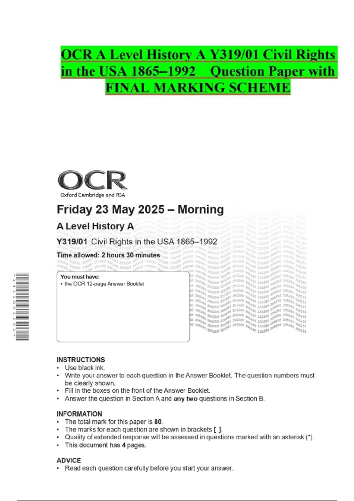 OCR A Level History A Y319/01 Civil Rights in the USA 1865–1992 ...