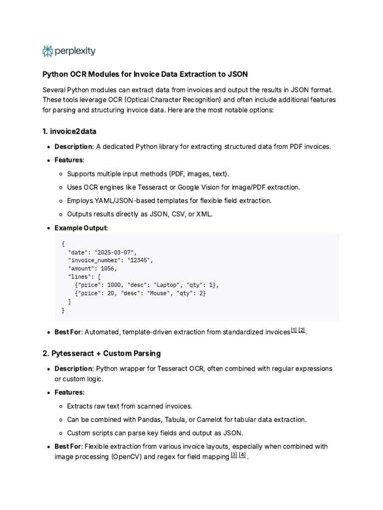 Python OCR Modules For Invoice Data Extraction To | PDF | Optical ...