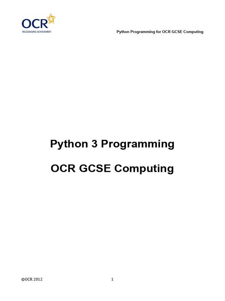 Python Programming for OCR GCSE Guide | PDF | Data Type | Variable ...
