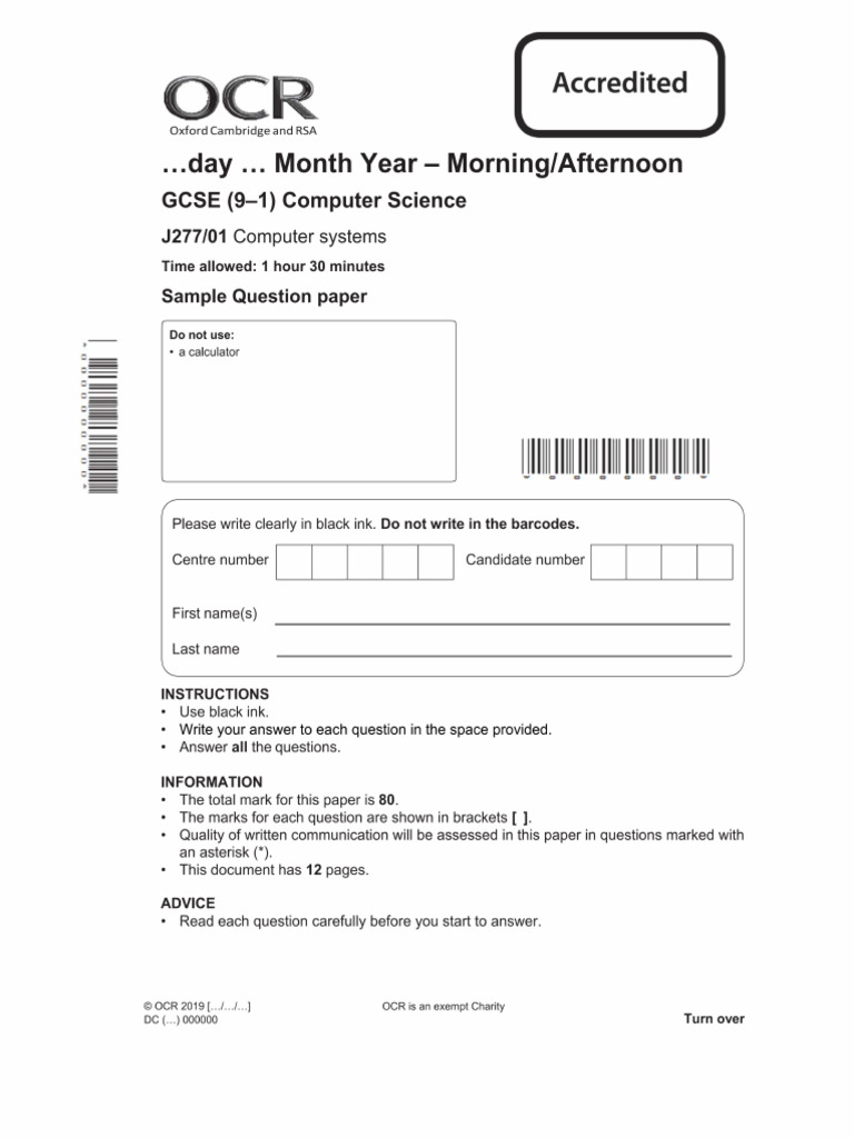 Sample MS - Paper 2 OCR Computer Science GCSE | PDF | Compiler ...