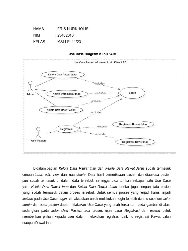 Use Case Diagram Dan Use Case Scenario Klinik ABC - OCR | PDF