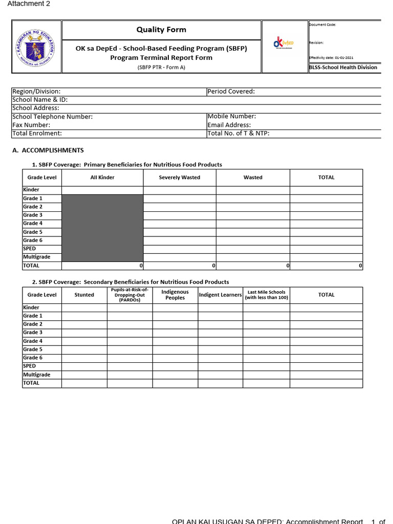 Quality Form: Ok Sa Deped - School-Based Feeding Program (SBFP) Program ...