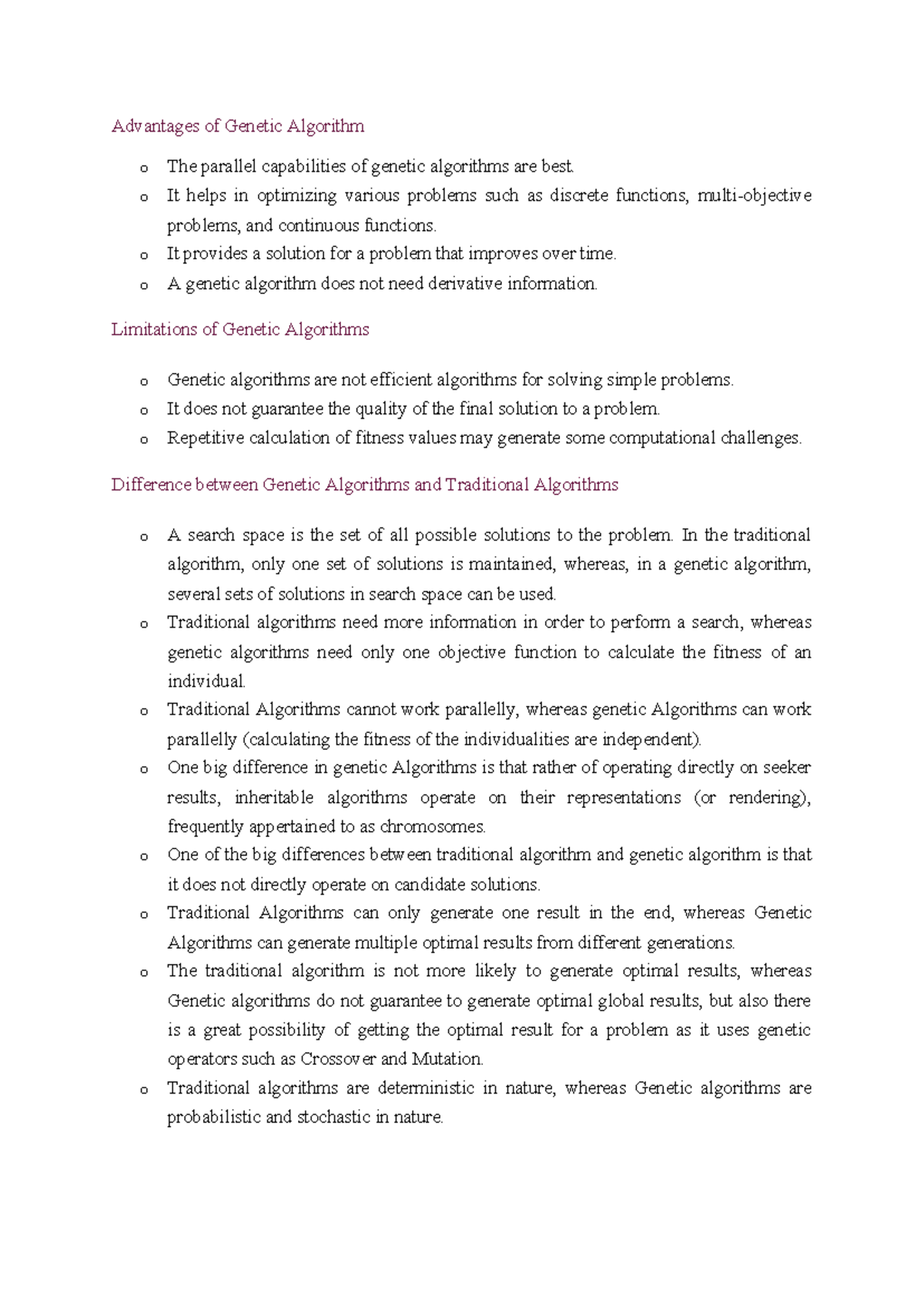 Advantages and Limitations of Genetic Algorithms (CS101) - Studocu