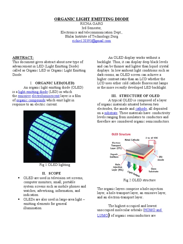 Organic light emitting diode (oled) | PDF