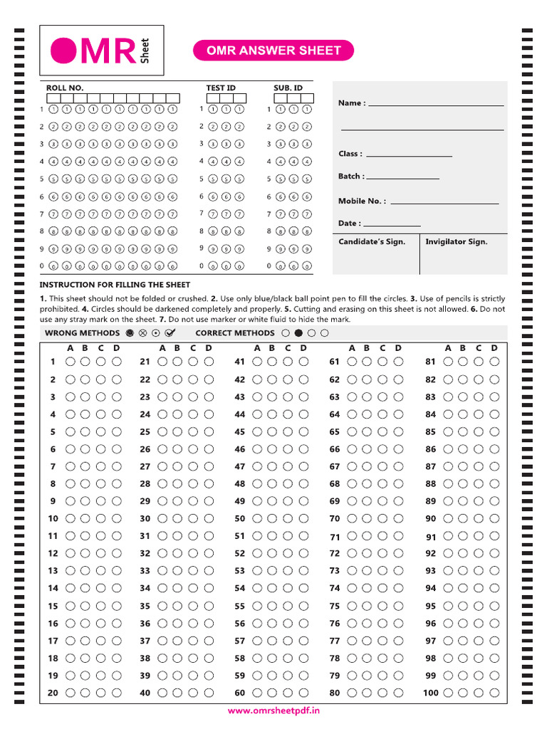 180 question omr sheet sample free download – Artofit