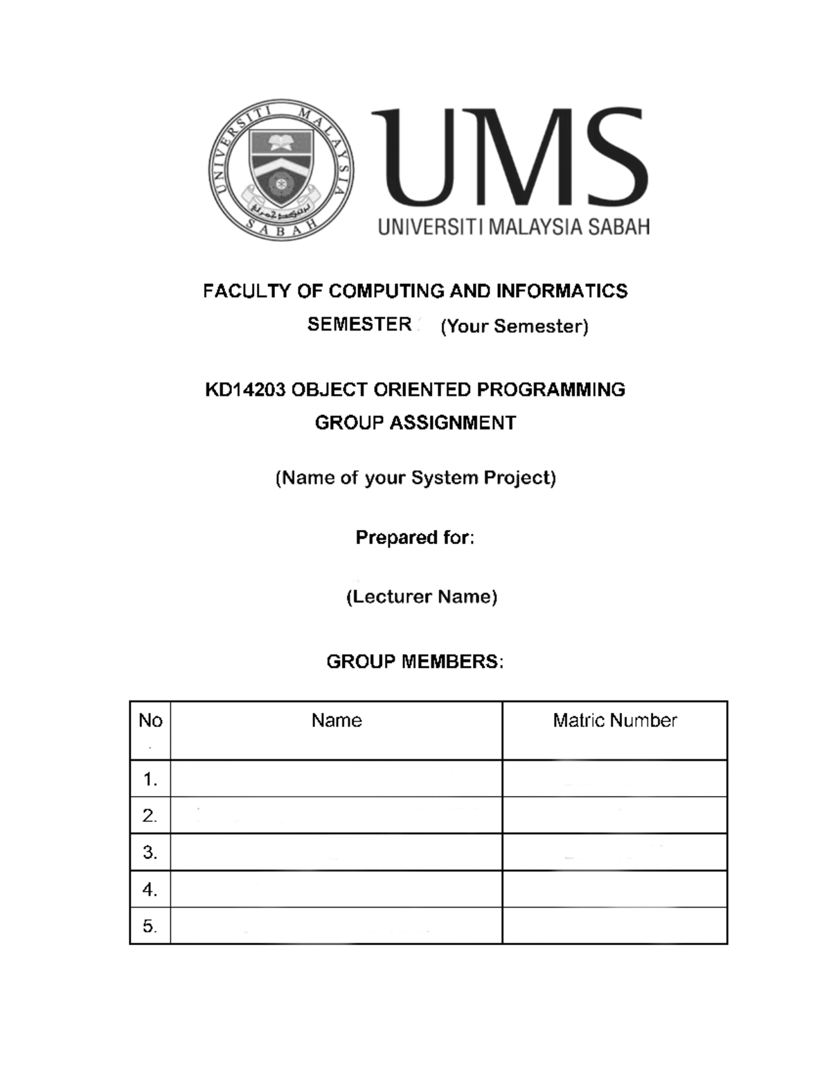OOP Project Report Sample - Course Code: OOP 101 - Studocu