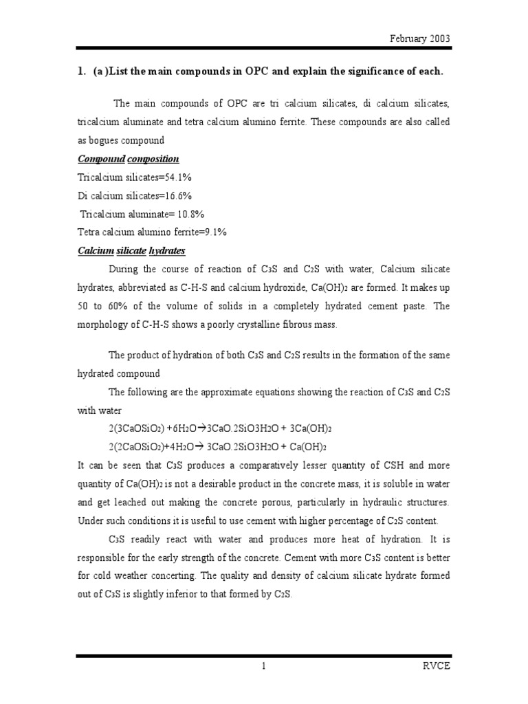 (A) List The Main Compounds in OPC and Explain The Significance of Each ...