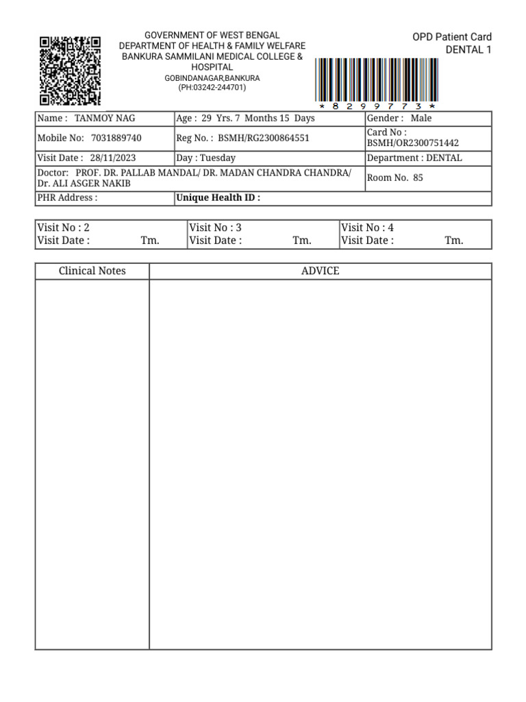 Bankura Dental OPD Patient Card | PDF