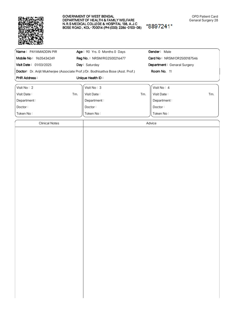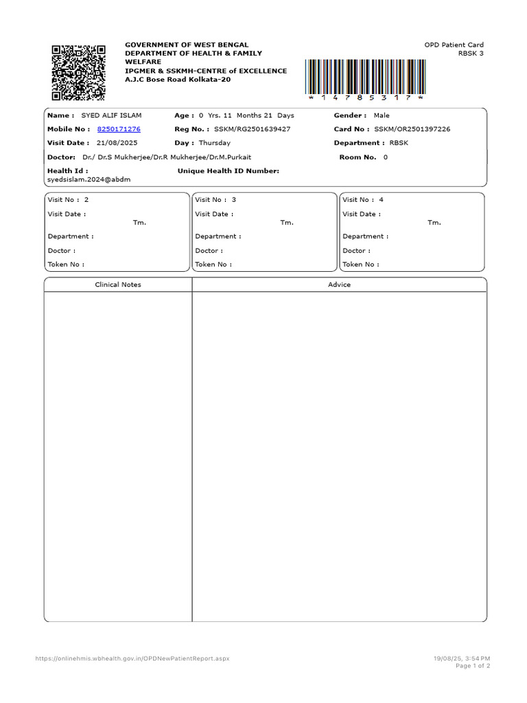 West Bengal OPD Patient Card Details | PDF