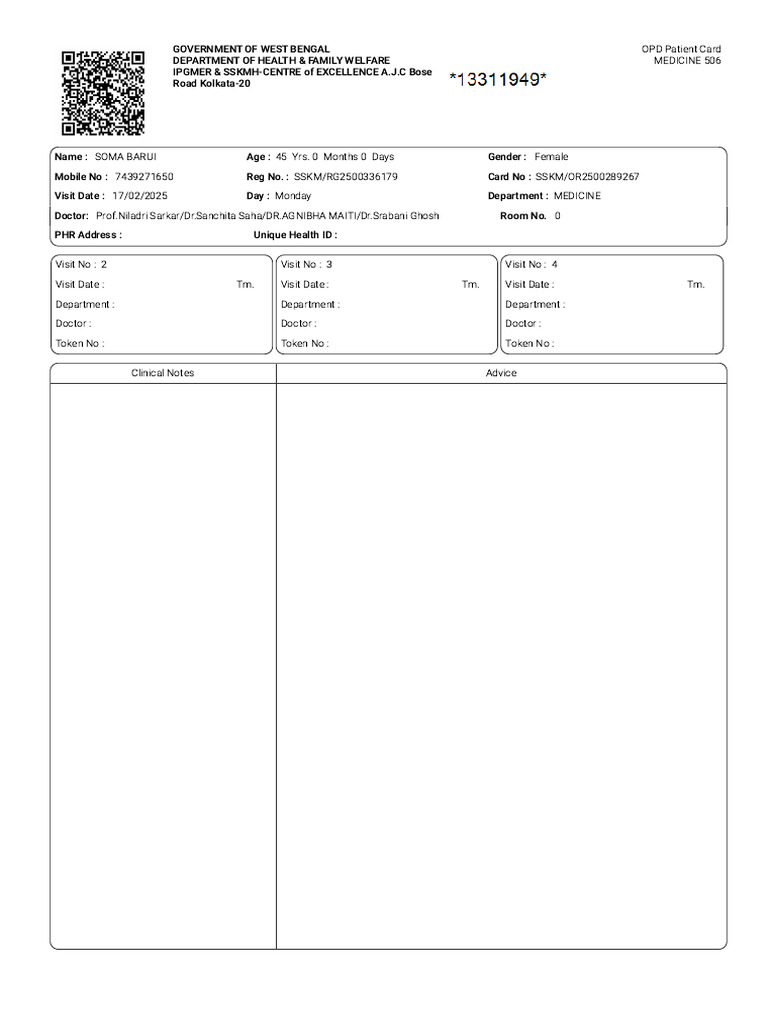 OPD Patient Card for Soma Barui | PDF