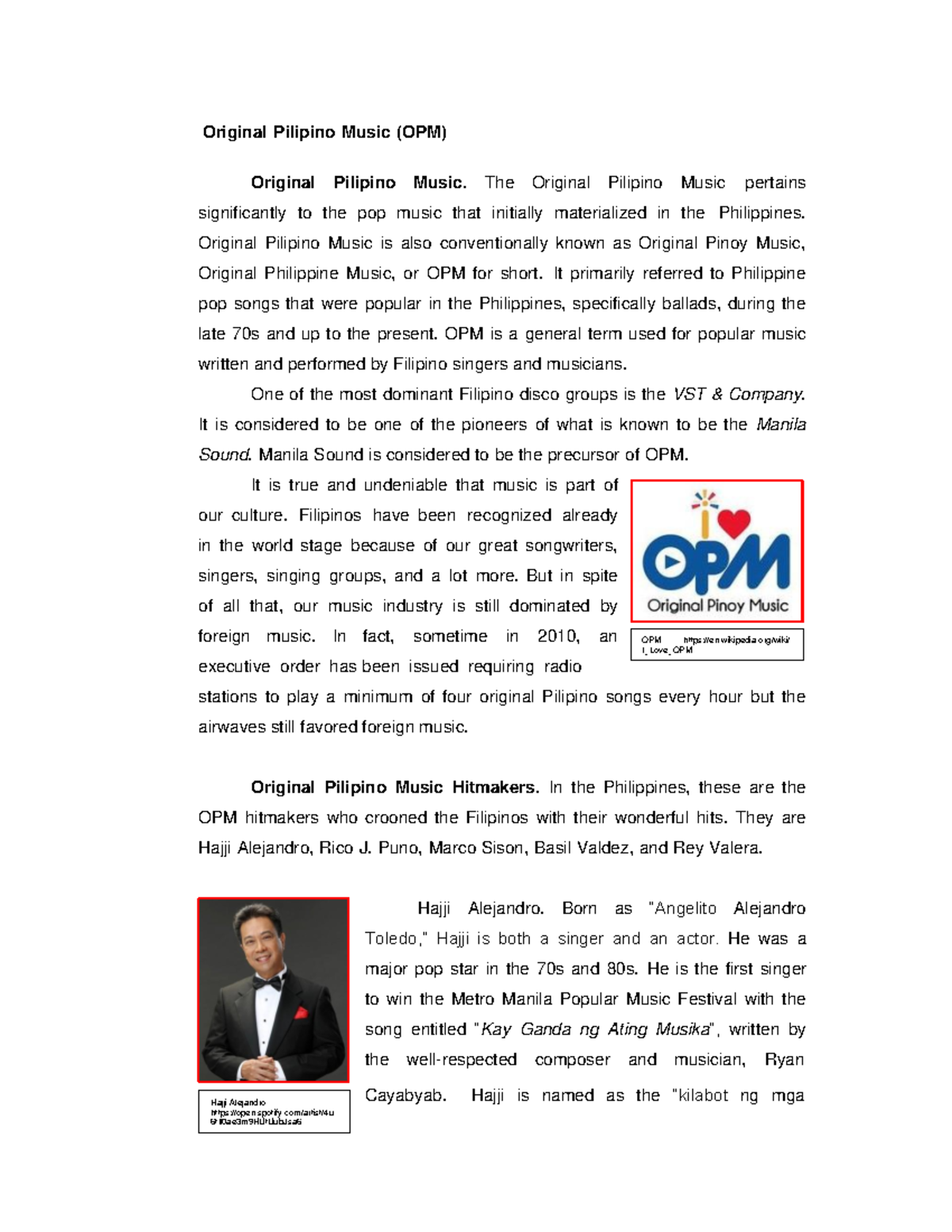 OPM: A Comprehensive Overview of Original Pilipino Music - Studocu