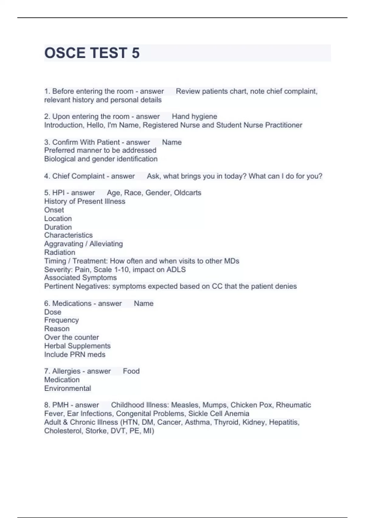 OSCE TEST 5 QUESTIONS WITH ACCURATE ANSWERS 2023 - OSCE - Stuvia US