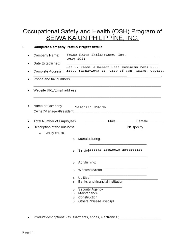 DOLE TEMPLATE Occupational Safety and Health OSH Program | PDF ...