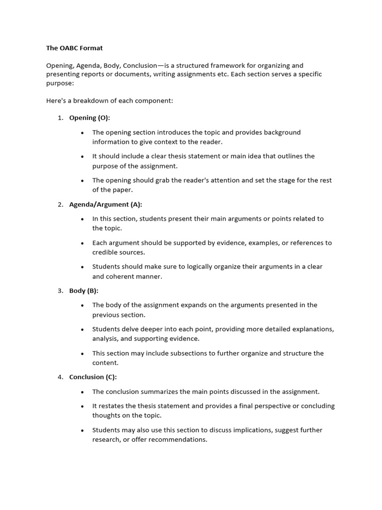 OABC - OABCA Writing Framework for Professionals OABC represents ...