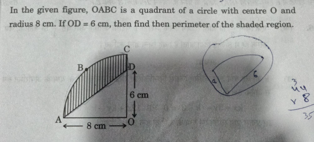 7. In fig., a square OABC is inscribed in a quadrant OPBQ. If OA = 15 ...