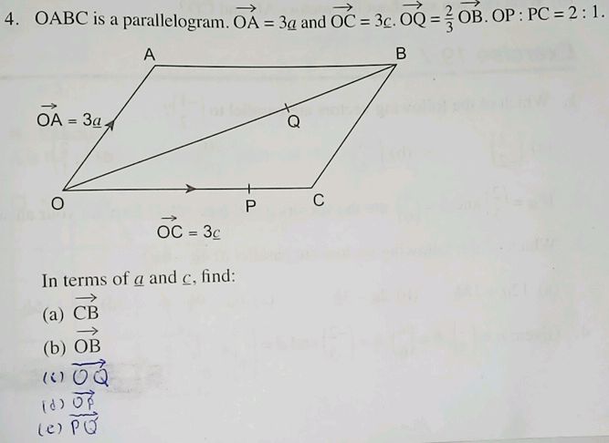 Solved: OABC is a parallelogram. vector OA=a and vector OC=c X is the ...