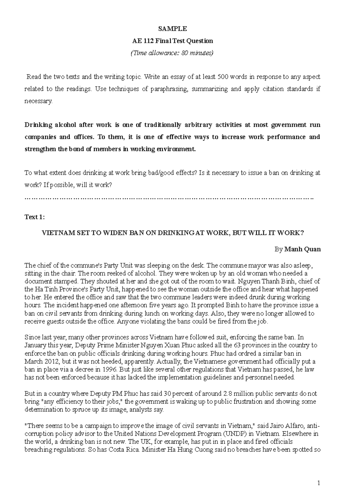 AE WR FE 1 - abc - SAMPLE AE 112 Final Test Question (Time allowance ...