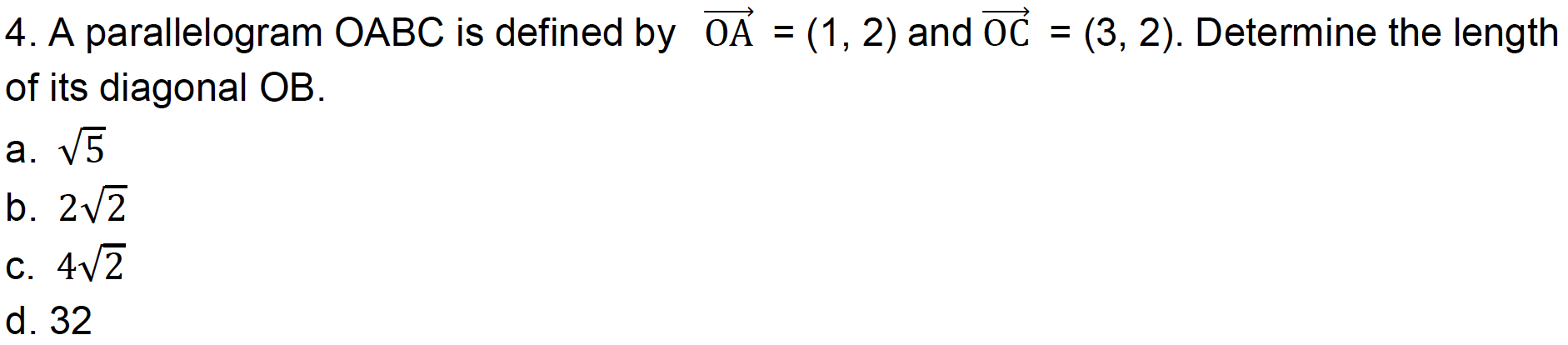Solved 4. A parallelogram OABC is defined by OA = (1, 2) and | Chegg.com