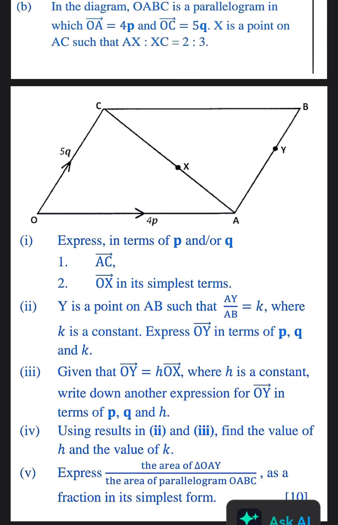 (b) In the diagram, OABC is a parallelogram | StudyX