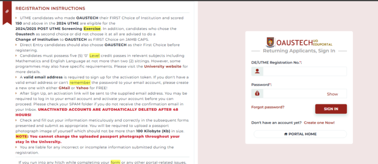 OAUSTECH Post UTME Form 2025/2026 Admission Now Open - Exams Updates