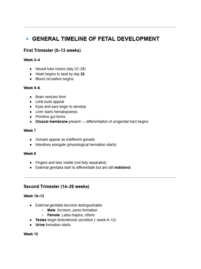 Fetal Development Timeline | PDF | Anatomy | Organ (Anatomy)