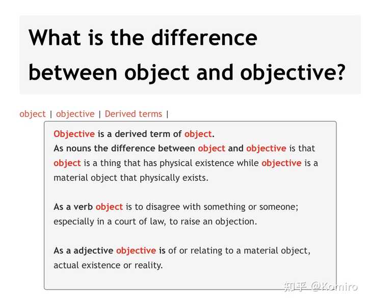 object和objective都有“目的,宗旨”的释义,在语境使用中他们的区别是? - 知乎