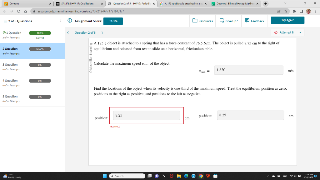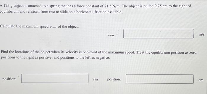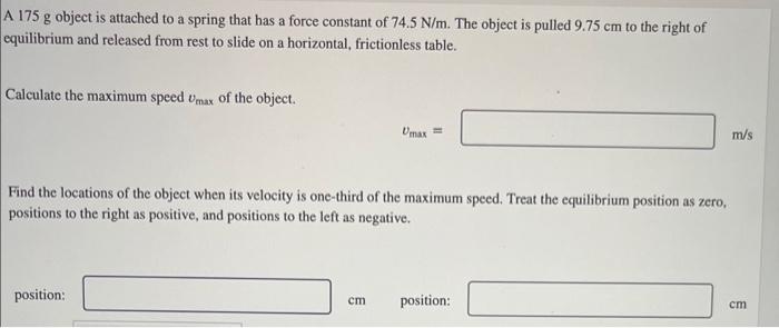 Solved A 175 g object is attached to a spring that has a | Chegg.com