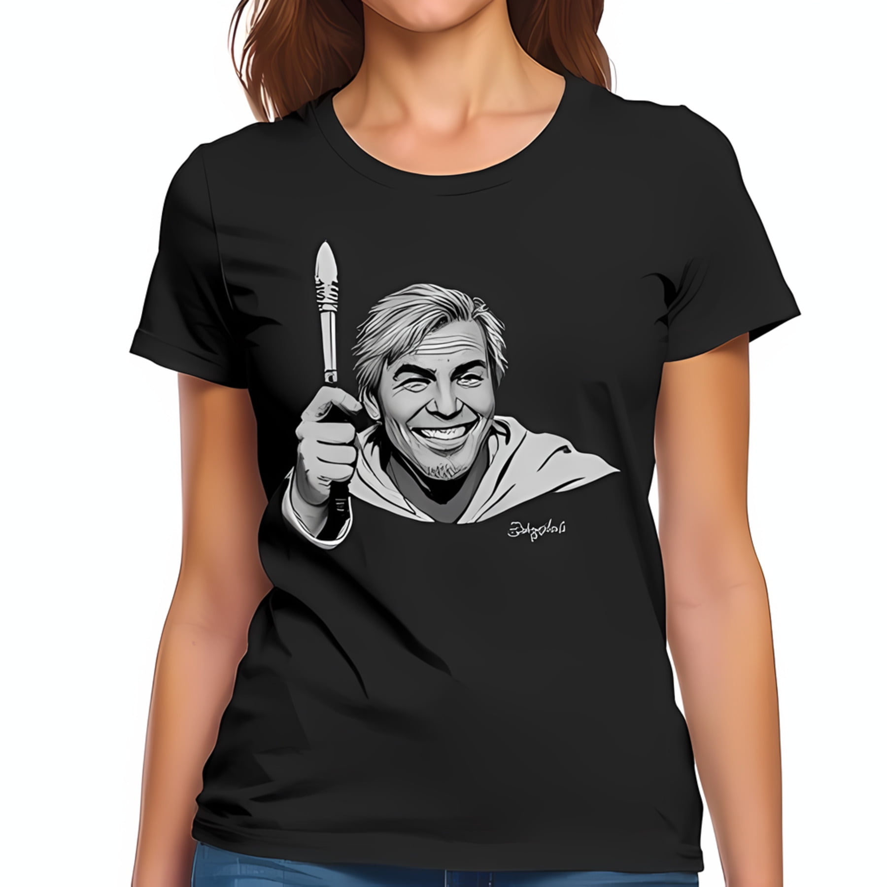 Stylized Black & White Graphic T-Shirt - Comic Style Illustration of ...