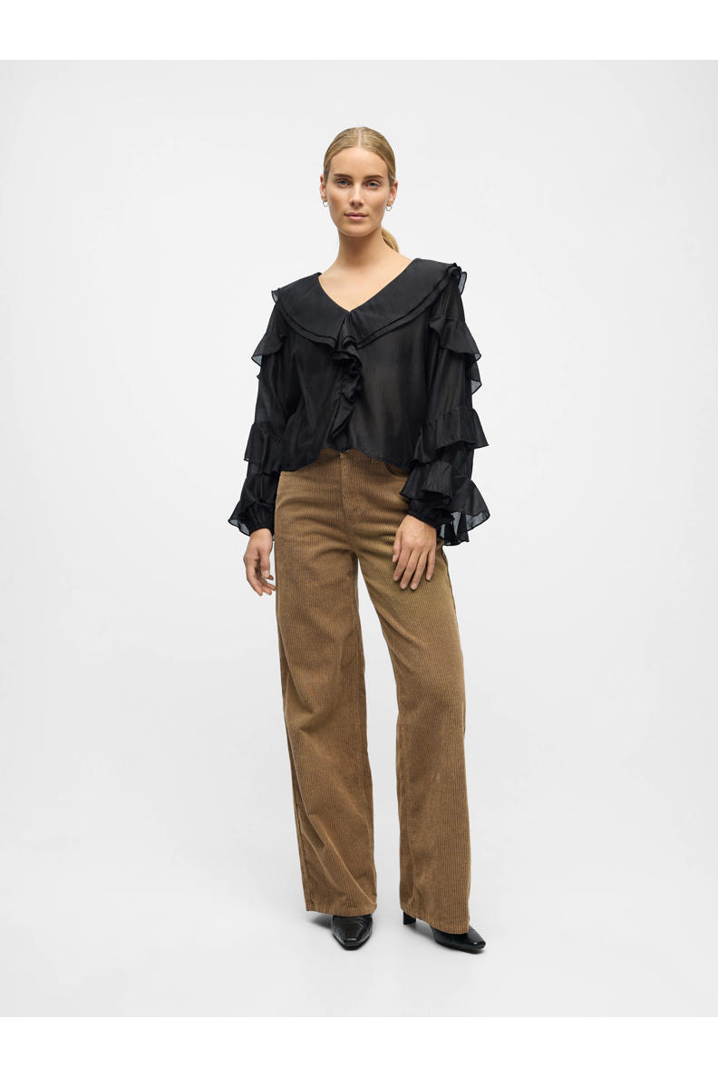 OBJECT linnen straight fit pantalon OBJSANNE zwart | wehkamp