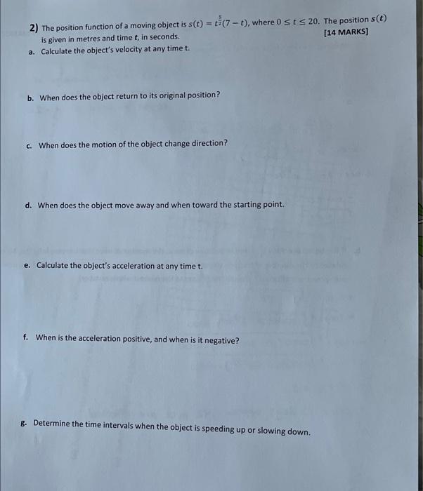 Solved The position function of a moving object is s(t)= | Chegg.com