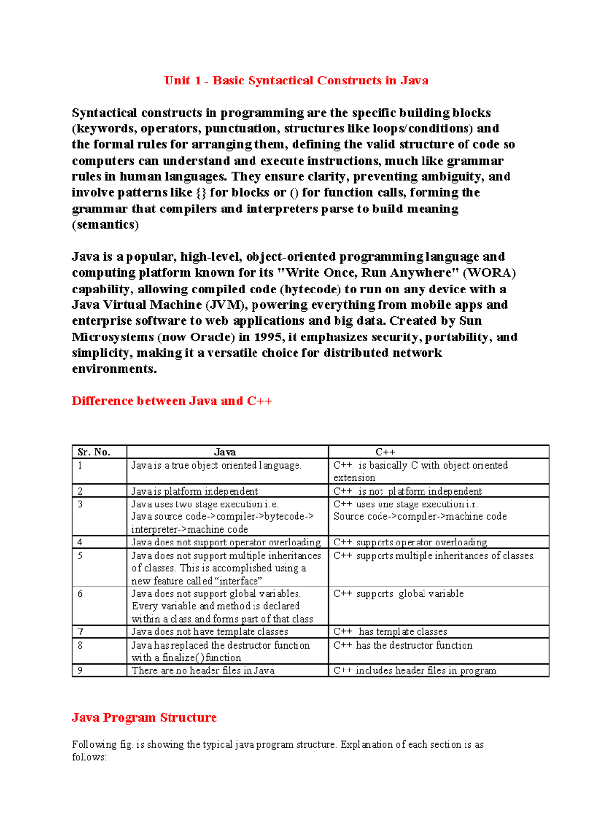 Unit 1: Basic Syntactical Constructs in Java Programming - Studocu