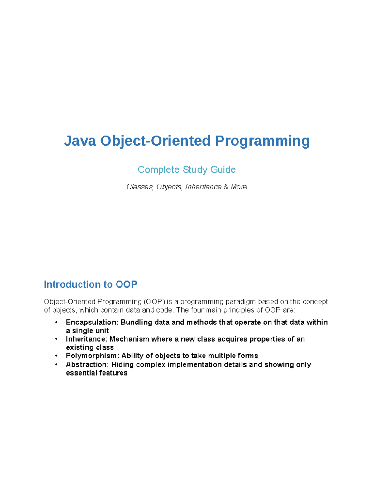 Java OOP Study Guide: Classes, Inheritance, and More (CS101) - Studocu