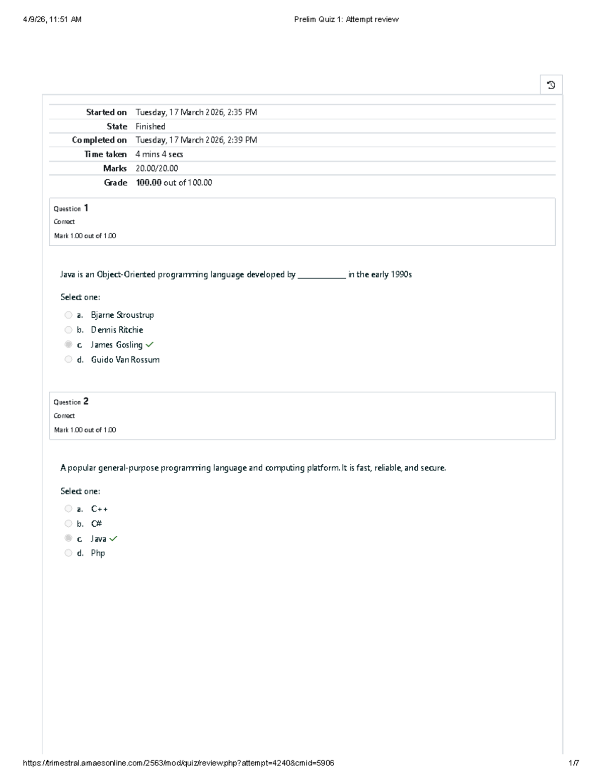 Prelim Quiz 1 Attempt Review - Java Programming Insights - Studocu