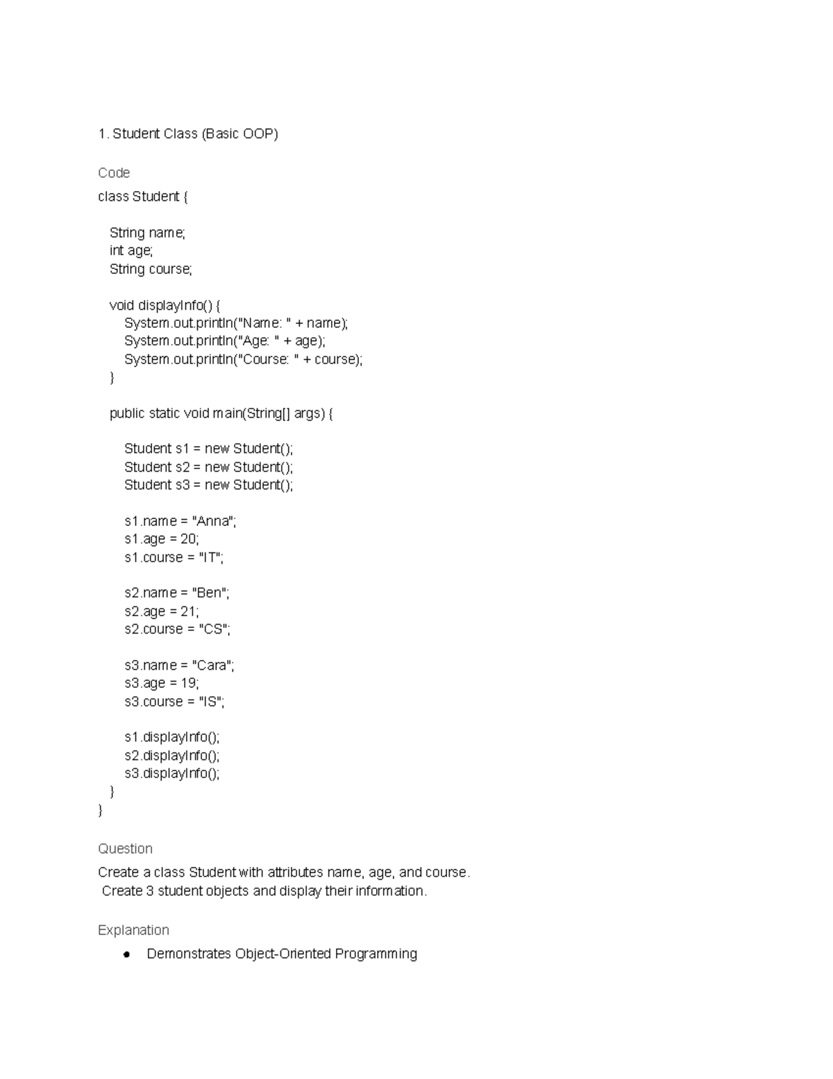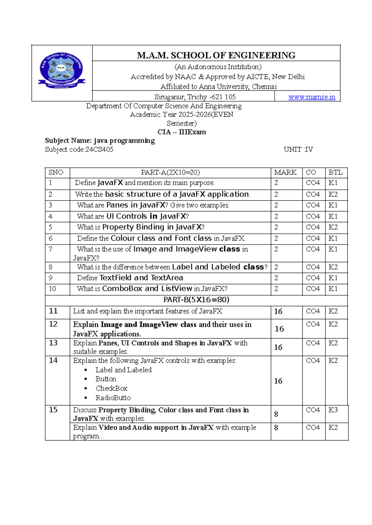 CIA 3 Question Bank for Java Programming (24CS405) - Studocu