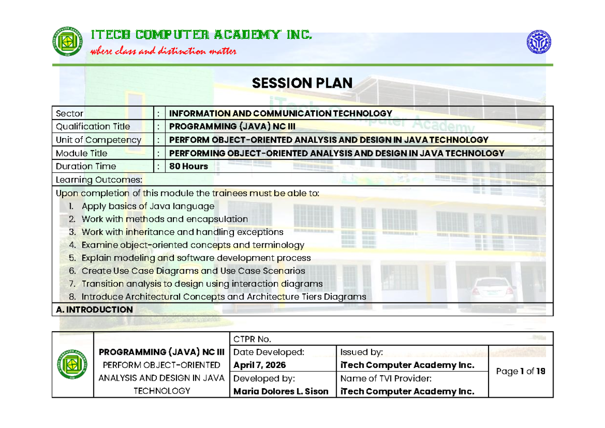 Session Plan: Programming (JAVA) NC - Perform Analysis & Design in Java ...