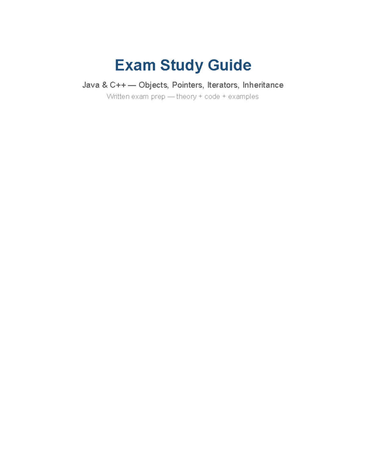 Java 1 Exam Study Guide: Objects, Pointers, Inheritance & Iterators ...