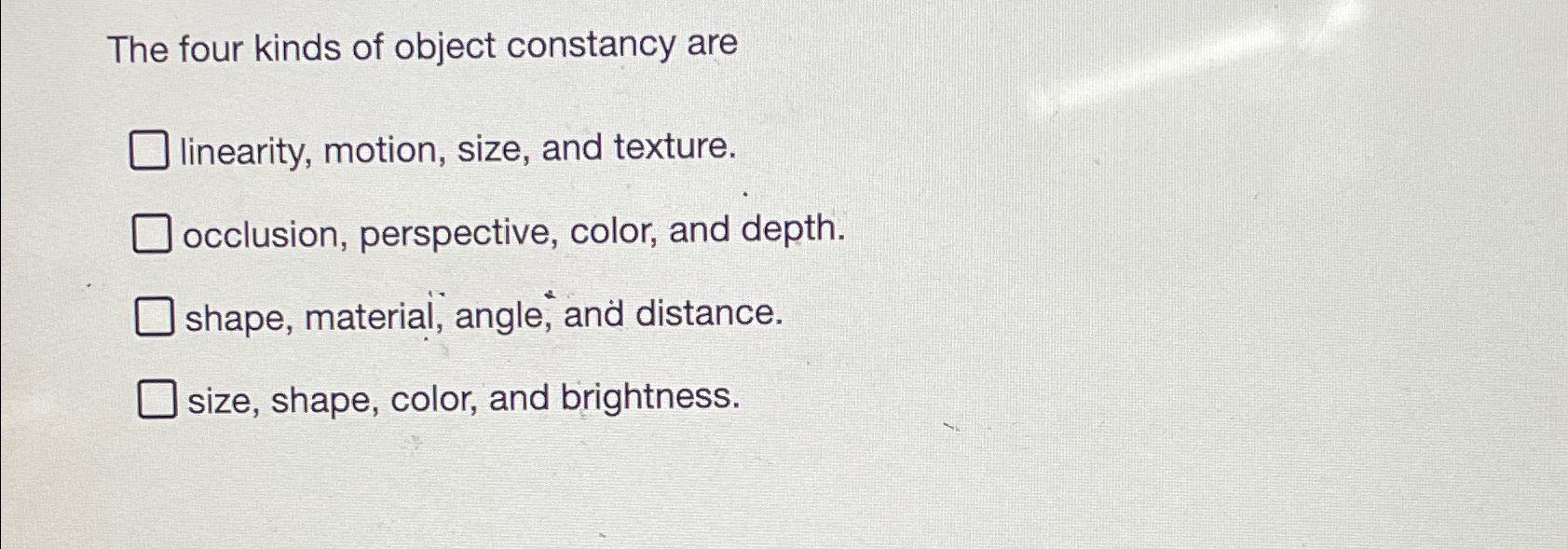 Solved The four kinds of object constancy arelinearity, | Chegg.com