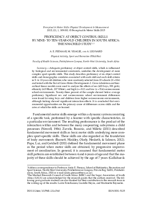 (PDF) Proficiency at Object Control Skills by Nine- to Ten-Year-Old ...