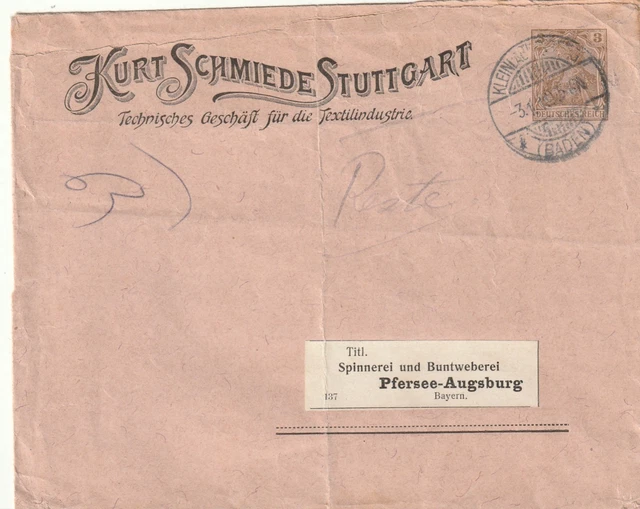 PRIVATE POSTAL STATIONERY envelope by Kurt Schmiede Stuttgart for 3 Pfg ...