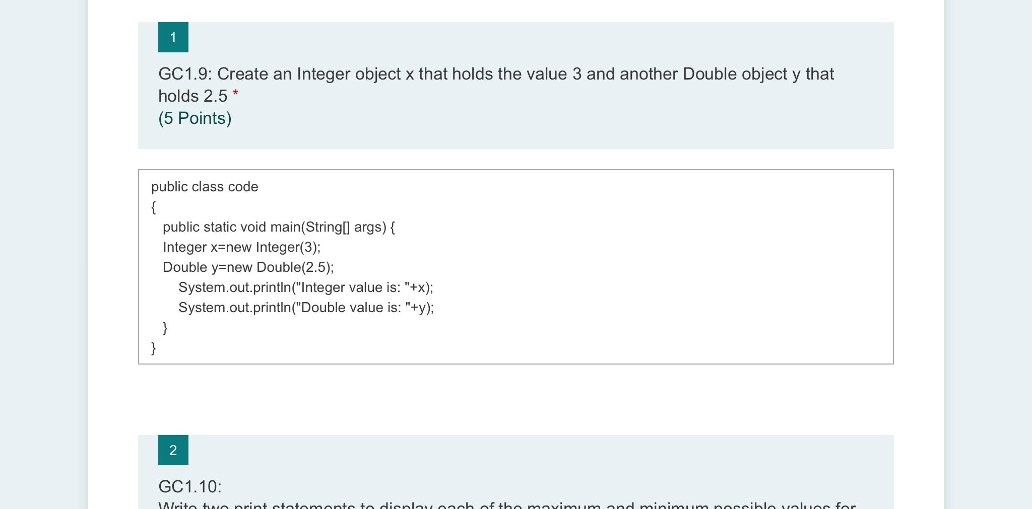 Solved 1 * GC1.9: Create an Integer object x that holds the | Chegg.com