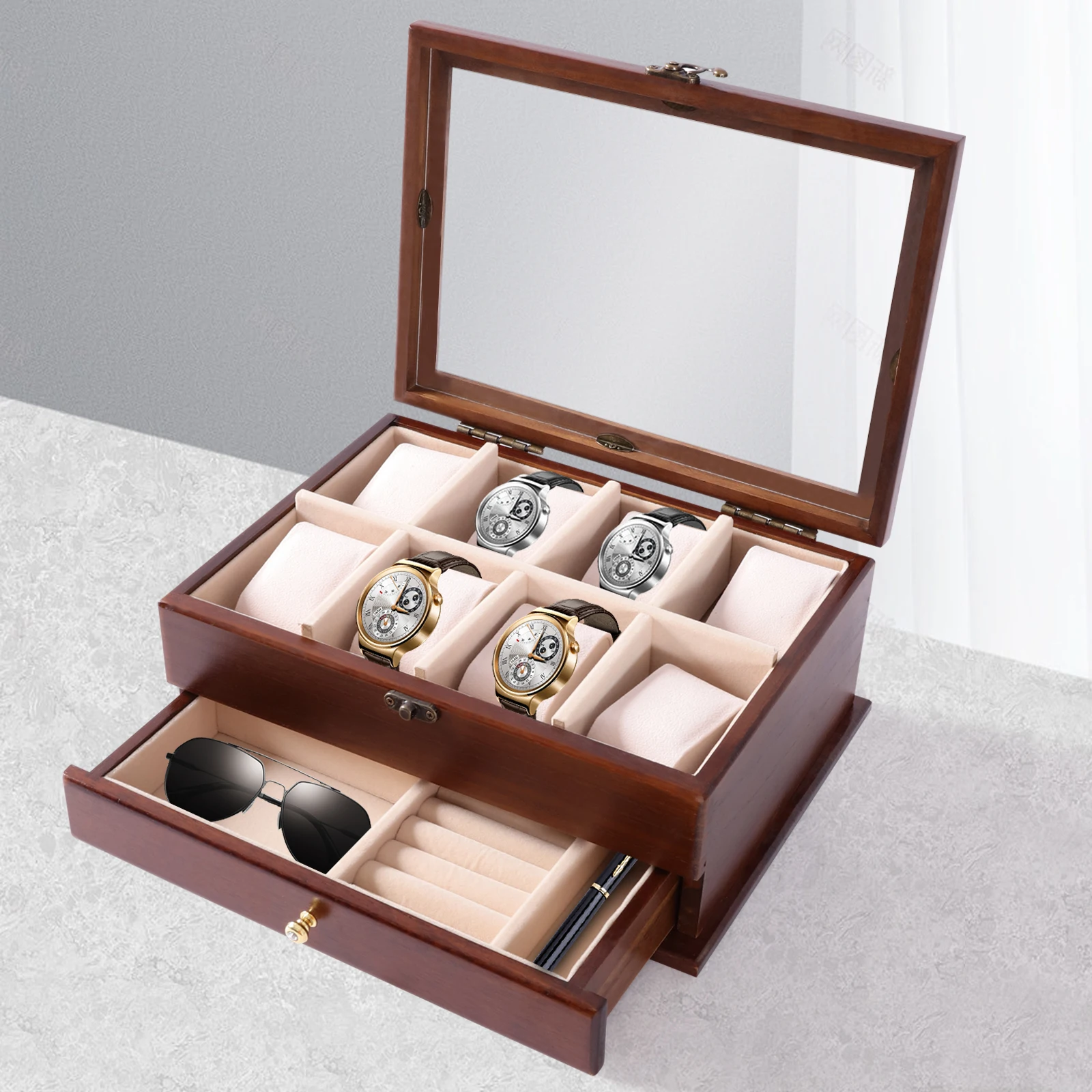 10 Slots Wood Watch Box Organizer Luxury Watch Parts Storage Box With ...