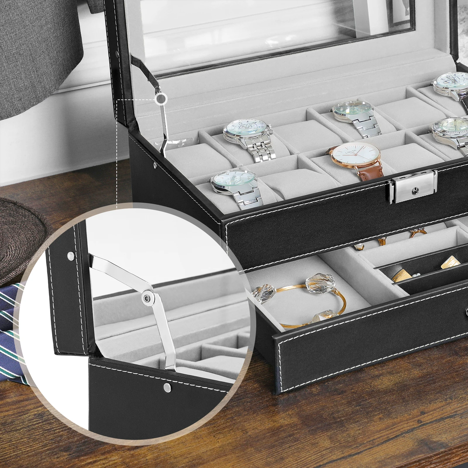 SONGMICS 20-Slot Watch Box, Watch Case with Glass Lid, 2 Layers ...