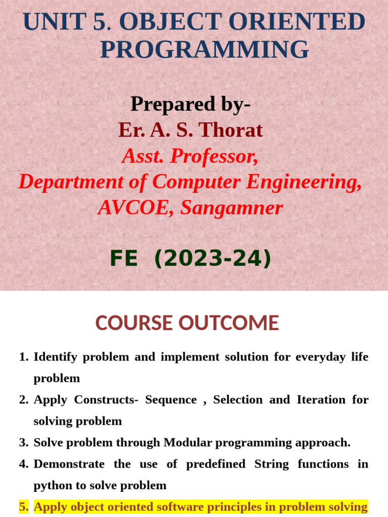 Unit 5 Object Oriented Programming | PDF | Class (Computer Programming ...