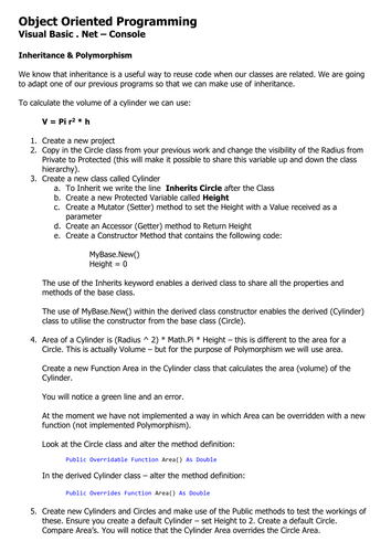 Object Oriented Programming - Visual Basic (Console) | Teaching Resources